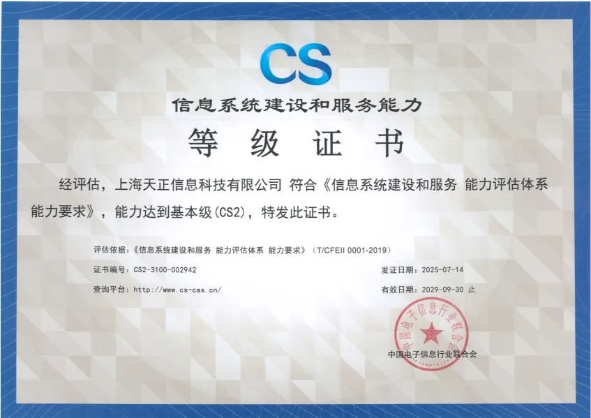 07-21◎祝賀上海天正信息榮獲CS二級(jí)證書(shū)!